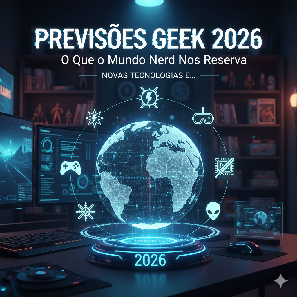 colecionáveis digitais, conteúdo independente, convenções virtuais, futuro cultura pop, games 2026, IA entretenimento, inovações mercado nerd, lançamentos aguardados 2026, mercado geek futuro, previsões geek 2026, realidade virtual 2026, streaming interativo, tecnologia geek 2026, tendências cultura nerd 2026, universos transmídia